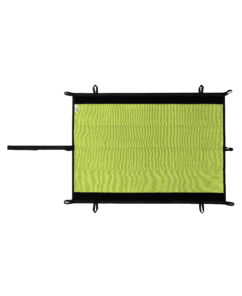 - Schlaufen zur Fixierung an Strukturen und rutschhemmende Rückseite sichern festen Halt